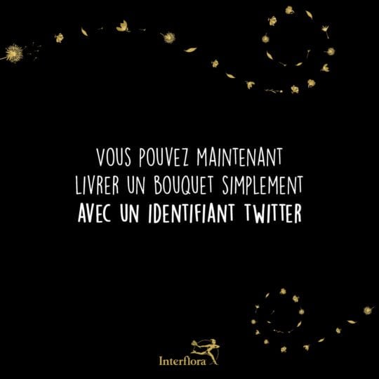 - Insérez l’identifiant Twitter de la personne que vous souhaitez livrer (elle doit pouvoir recevoir des messages privés du compte @interflora)