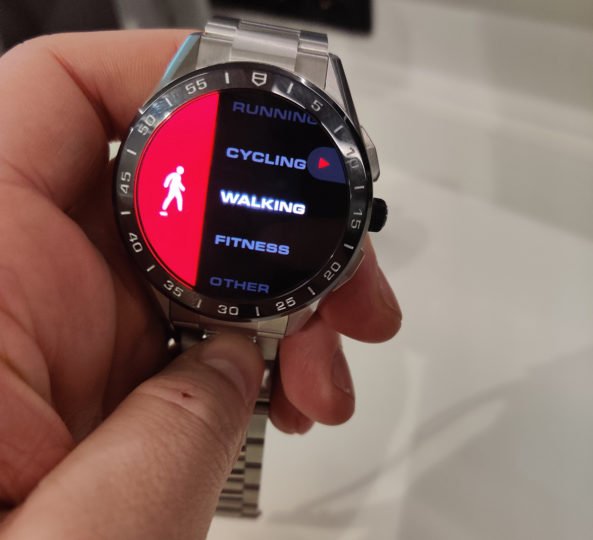 Sur l’écran, l’utilisateur peut choisir entre cinq cadrans d’inspiration mécanique ou digitale. Chacun de ces cadrans peut également être personnalisé pour répondre au style et aux besoins de chacun (cadran squeletté, Carrera Heuer 02, Carrera Heuer 01 numérisé, affichage à effet cristaux liquides, animation unique basée sur un algorithme de réseau de neurones baptisée Orbital ou encore écran développé en hommage à la structure en nanotubes hexagonaux du spiral en composite de carbone de la marque). Ces cadrans se personnalisent facilement selon différentes options et couleurs. On peut aussi configurer des indicateurs sur les cadrans en fonction de ses envies : suivi d’activité, notifications, météo etc. Cette configuration peut se faire sur l’écran de la montre ou depuis l’application mobile.
