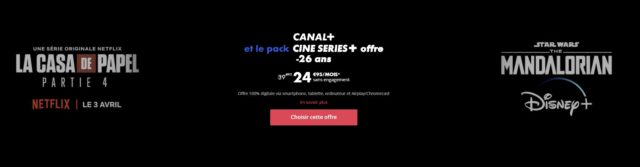Les fans de cinéma et série vont être aux anges. Netflix OCS, Disney+ sont disponibles depuis les offres du groupe CANAL+, et notamment inclus directement dans le pack Ciné Séries. Pour 24,90 euros par mois si vous avez moins de 26 ans, profitez d’un catalogue incroyablement vaste et varié qui rassemble pour la première fois toutes les productions originales et exclusivités du groupe CANAL+, de Netflix, d’OCS, et de Disney+, de Stranger Things à Avengers en passant par La Casa de Papel, The Mandolorian, Westworld, Le Bureau des Légendes et même de nombreux films.