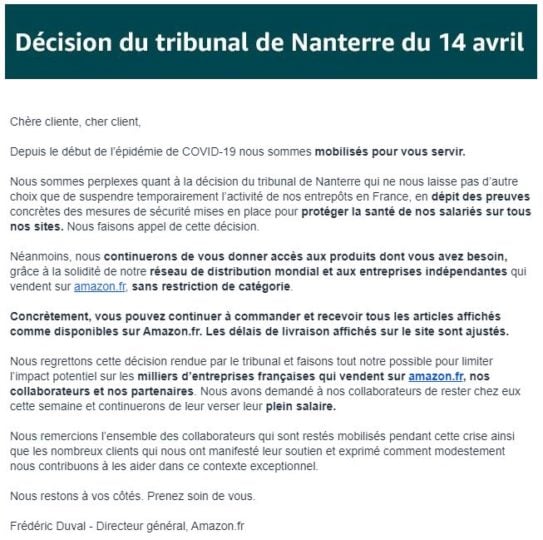 — AmazonNewsFR (@AmazonNewsFR) April 15, 2020