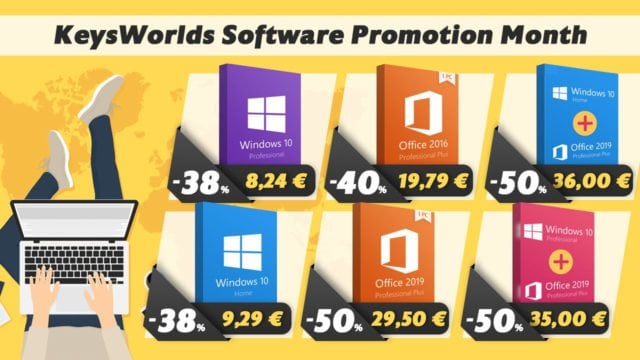 keysworlds.com est un site de vente de licences et de clés de logiciels à des tarifs très intéressant et avec des réductions allant de -35 jusqu’à -50%. Pour Office 2019, keysworlds propose une offre à 58.99€, moins de la moitié du prix original. En plus de cette offre, bénéficiez d’un code de réduction de 50% supplémentaires, soit un tarif final de 29.50€.