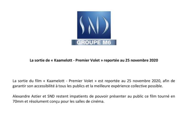 Ce sera une déception pour tout le monde et même pour Alexandre Astier, mais son film “Kaamelott – Premier volet” est repoussé au 25 novembre 2020 pour sa sortie au cinéma, alors qu’il devait sortir le 29 juillet deux mois plus tôt que prévu à la base. Le distributeur SND n’a donc pas voulu prendre de risque avec la période actuelle et la réouverture des cinémas qui est loin d’être actée. Ce qui est compréhensible pour ce film très attendu, tourné en 70mm, qui ferait partie d’une trilogie…