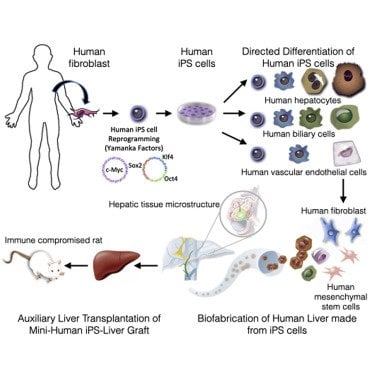 Les fibroblastes récupérés sur la peau humaine empruntent donc le chemin inverse de leur développement normal et se dé-différencient : elles reviennent à un stade précoce où elles étaient encore capable de devenir différents types de cellules. On parle alors d’iPSCs, un acronyme anglais qui signifie cellule souche pluripotente induite Il ne reste ensuite qu’à fournir à ces cellules souches les composés qui vont déclencher leur différenciation non pas en cellule de peau, mais cette fois, en une cellule du tissu visé. En l’occurrence, il s’agit de différents tissus du foie comme des hépatocytes ou des cellules biliaires. Une fois le nouvel organe agencé, il ne reste qu’à le transplanter à un rat génétiquement modifié pour inhiber ses réactions immunitaires : indispensable pour éviter une réaction de rejet.