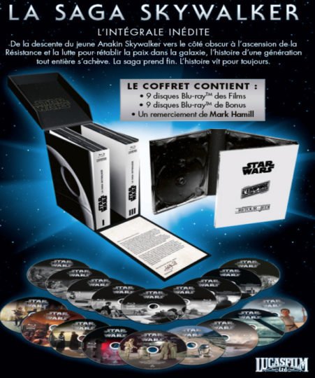 En plus de sa sortie Blu-ray, DVD, VOD de Star Wars : L’Ascension de Skywalker, retrouvez l’intégrale de la saga Skywalker dans un coffret Blu-Ray et DVD inédit. Ce coffret contient non seulement les 9 disques des films, mais aussi 9 disques de Bonus avec des images de tournage inédites, ainsi qu’une lettre de remerciement d’un des acteurs les plus cultes de Star Wars, Mark Hamill (Luke Skywalker).
