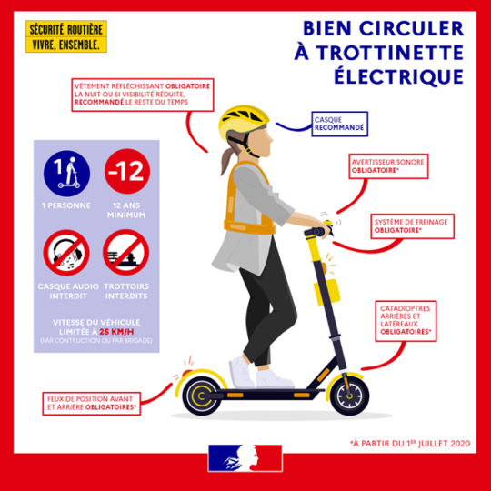 En effet à partir du 1er juillet 2020, les usagers de trottinette électrique sont désormais invités à disposer sur leur véhicule :