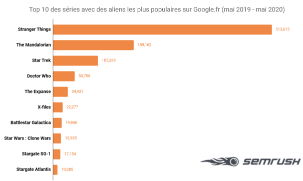 Côté séries, c’est Stranger Things de Netflix qui s’illustre en première position, suivi de The Mandalorian, Star Trek, Doctor Who, The Expanse et X-files.