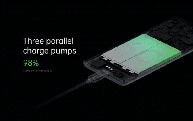 On passe maintenant à une puissance de 125W et sur un smartphone équipé d’une batterie de 4000mAh, il ne faudra que 20 minutes pour recharger de 0 à 100 le smartphone. Avec un temps de 5 minutes, c’est 41% de la batterie qui est rechargé, de quoi tenir facilement une demi-journée complète voire une journée entière en faisant attention. Pour arriver à un tel exploit, Oppo n’a pas que poussé la puissance sur un chargeur bien évidemment, il a fallu travailler sur la batterie même et la distribution de la recharge. Sur l’Oppo Find X2 Pro par exemple, la batterie était en composé de deux batteries qu’on rechargeait en « parallèle ». Oppo avait même réussi l’exploit de maintenir une température relativement faible et ce, malgré une recharge aussi rapide et puissante. C’est un peu le même cas ici avec le prototype qui présentait la technologie. La batterie est décomposé en plusieurs petites batteries et chacune d’entre elles reçoivent plusieurs canaux de recharge d’affilée, ce qui accélère la recharge. La seule limite pour l’instant est que pour assurer de telles performances, le smartphone ne doit pas dépasser les 40°C. C’est pour cela que le smartphone intègre pas moins de 13 capteurs pour maintenir le smartphone sous le seuil des 40°C. Et enfin, si vous avez peur pour la durée de vie de la batterie même, Oppo assure que sa batterie 6C tiendra pas moins de 800 cycles.