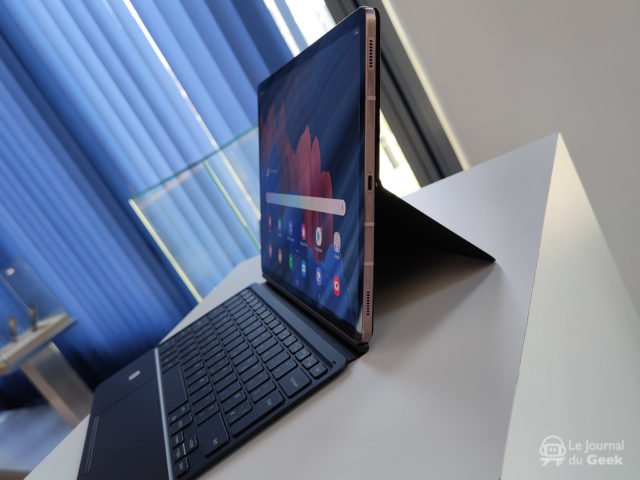 Si on pré-commande une des deux Galaxy Tab S7 entre le 5 août 2020 et le 20 août 2020, Samsung offre la nouvelle Book Cover en deux parties qui intègre un dos qui peut servir de pied et un combo clavier/trackpad. La disponibilité est donc prévue pour le 21 août 2020.