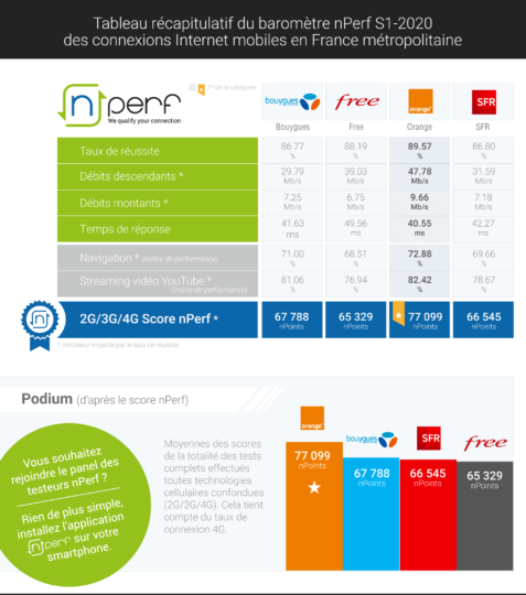 Avec un score de 77099 nPoints, en progression de +4% par rapport à 2019 malgré le Covid 19, il se place largement devant Bouygues Telecom, SFR et Free.
