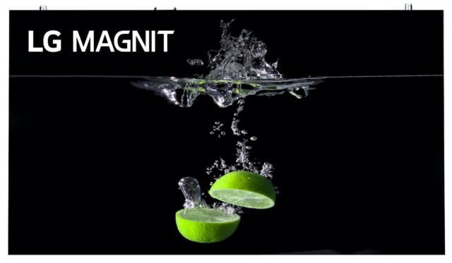 Le LG Magnit est un téléviseur très grand modèle (163 pouces) en 4K, qui fonctionne sous webOS, le système d’exploitation maison du constructeur. Le modèle embarque le processeur graphique α qui s’appuie sur l’intelligence artificielle pour analyser les contenus et en optimiser l’affichage en temps réel. LG le propose en format « cabinet » que l’on peut connecter entre eux. L’entreprise a mis au point un connecteur sans contact qui envoie et reçoit les signaux, tandis que l’alimentation est assurée par des connecteurs à broches situés sur les côtés.