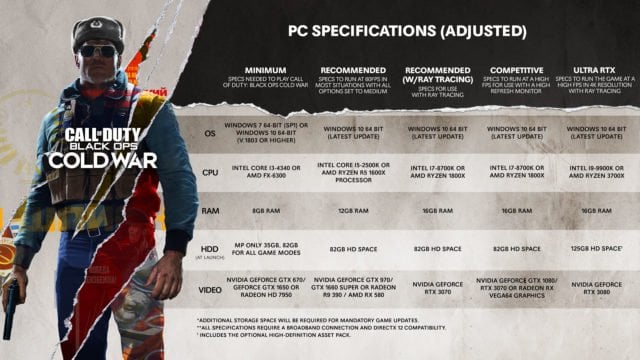 Enfin, ça c’était avant. Car Activision a comme par magie revu les spécifications du jeu. La configuration minimale ne requiert plus que 35 Go (uniquement le mode solo), 82 Go pour les configurations recommandées et compétitives, et 125 Go pour la version Ultra RTX. Des exigences beaucoup plus raisonnables, même si on peut se demander comment l’éditeur est parvenu à éliminer les gigaoctets.