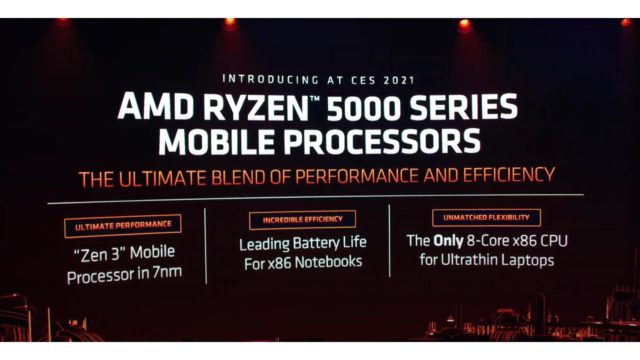 Après les lancements des consoles Next Gen et des Ryzen 5000 et des Radeon RX, AMD avait encore quelques surprises en stock pour le CES 2021. Comme Intel, la firme s’est surtout intéressée aux ordinateurs portables en présentant les déclinaisons pour laptop des Ryzen 5000, un “bond en avant significatif” pour ces machines selon Lisa Su, la présidente d’AMD, qui animait la conférence.