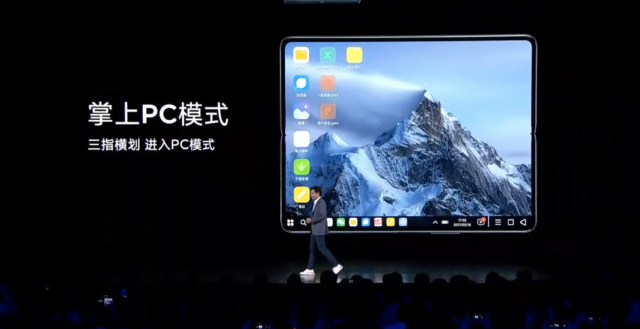 Tout cet espace disponible a poussé Xiaomi à concevoir un « mode PC », activable au besoin, et qui permettra d’utiliser le Mi Mix Fold tel un ordinateur, avec la possibilité d’afficher plusieurs fenêtres les unes à côté des autres.