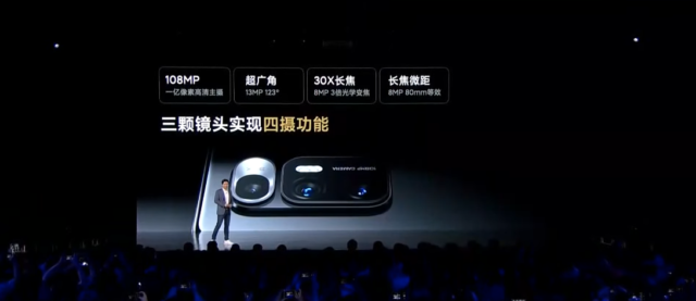 À l’arrière, on retrouve trois capteurs, dont un capteur de 108 MP surmontée d’une lentille liquide d’un nouveau genre. On disposera également d’un ultra grand-angle de 13 MP (123°) et d’un télémacro de 8 MP. Rien n’a été mentionné concernant les caméras frontales, et on discerne simplement un poinçon sur l’écran externe, mais rien du tout sur l’écran interne. Peu de chances qu’une caméra soit placée sous la dalle flexible. Enfin, on note la présence de quatre haut-parleurs, situés de part et d’autre de l’appareil et signés Harman/Kardon.