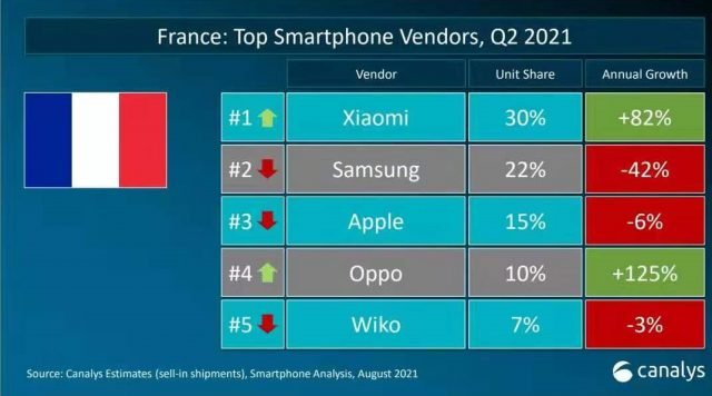 Au delà de l’Hexagone, Xiaomi s’est placé en deuxième position sur le marché mondial au deuxième trimestre, et le constructeur occupe tout simplement la première place en Europe où il affiche une croissance de plus de 50%, toujours selon Canalys. Le seul nuage à l’horizon, c’est la pénurie de composants qui frappe aussi bien Xiaomi que le reste de l’industrie.