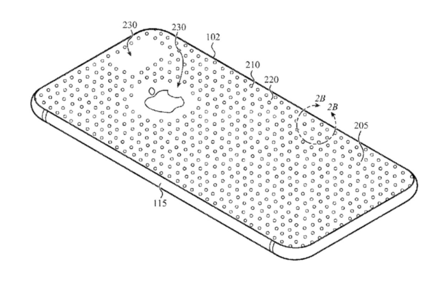 Le brevet d’Apple comprend des dessins montrant différentes formes de ces composants, chacun ayant différents avantages mais le même objectif global. Il comprend également un dessin montrant ces composants répartis sur l’arrière d’un iPhone. Même s’il s’agit d’un simple dessin illustratif, il révèle que l’espacement entre ces composants varie entre 10 et 100 microns.