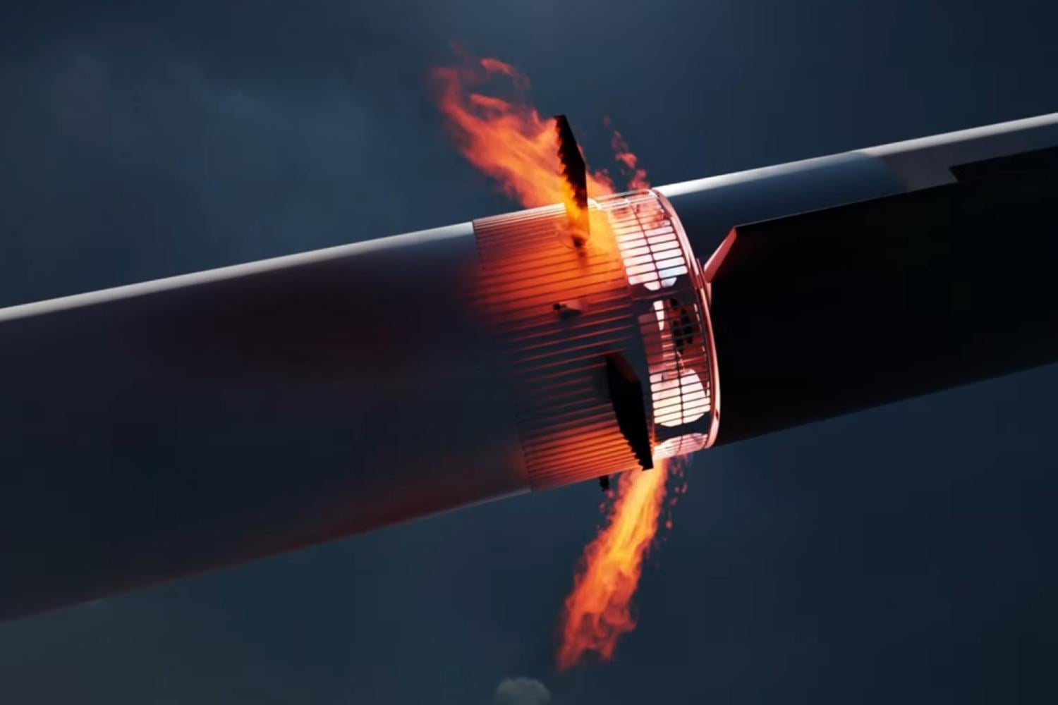 Cette excellente dynamique a continué jusqu’à +58 mn, quand le véhicule a rencontré ses premiers pépins. Une partie de la structure a commencé à se désintégrer sous l’effet de la température, et de l’acier en fusion a commencé à se disperser un peu partout autour du véhicule. La caméra embarquée, de son côté, a été fracturée, empêchant le public de visualiser clairement cette dernière ligne droite. Une image inquiétante qui semblait annoncer une perte de contrôle imminente.