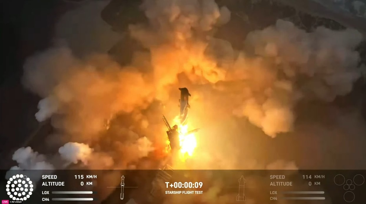La première phase du vol s’est remarquablement bien déroulée. Aucun problème notable n’a émergé pendant la mise à feu. La séparation des deux étages s’est à nouveau très bien passée, confirmant ainsi la pertinence de la stratégie de SpaceX. Pour rappel, à partir du 3e vol, l’entreprise a décidé de pivoter vers le modèle du hot staging, qui consiste à démarrer les moteurs du Starship avant même qu’il ne soit entièrement désolidarisé du Super Heavy afin d’éviter un temps mort dans l’ascension. Et le véhicule s’est exécuté brillamment, avec une mise à feu parfaite des moteurs Raptor qui ont longtemps causé bien des tracas aux ingénieurs.