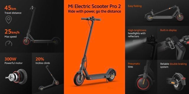 La nouvelle Mi Electric Scooter Pro 2 peut atteindre des vitesses de 25 Km/h et couvrir des distances allant jusqu’à 45 km avec une seule charge. Son moteur CC sans balais de 300W fournit la puissance nécessaire pour gravir des pentes inclinées de 20%, tandis que l’écran LCD intégré permet de surveiller la vitesse en temps réel, les modes de conduite et le niveau de la batterie. Équipé de pneus de 8,5 pouces, le bolide résiste à l’usure et absorbe les chocs sur la route. De même, un système de double freinage offre un niveau de sécurité supplémentaire, tandis qu’un réflecteur avant, arrière et latéral supplémentaire ainsi qu’un puissant phare 2W améliorent la visibilité. Fabriqué à partir de matériaux légers, ce modèle de 14,2 kg peut être plié rapidement.