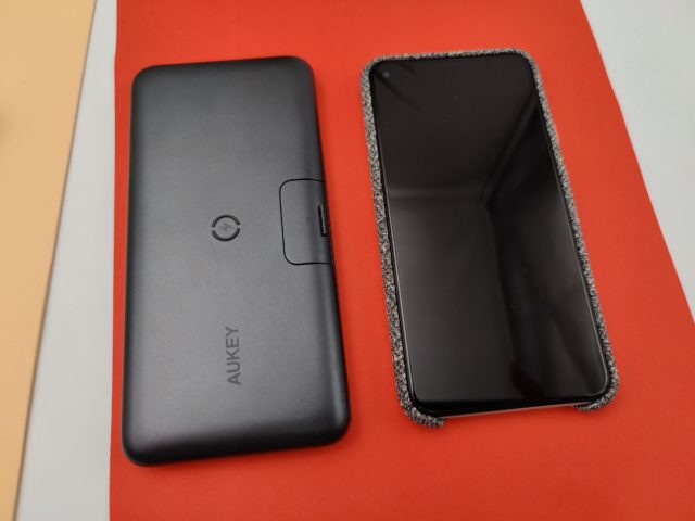 La batterie se recharge quand à elle complétement en un peu plus de 3 heures avec un chargeur de 18 W. Enfin, on notera qu’elle dispose d’un indicateur LED sur le côté indiquant le niveau de batterie et l’état de charge. De plus, un autre indicateur dédié à la charge sans fil indique lorsque la charge rapide sans fil est active. La batterie n’est pas si imposante puisque comme vous pouvez le voir ci-dessous, elle est de la taille d’un Pixel 4a 5G, elle n’est pas non plus très lourde et se glissera facilement dans un sac.