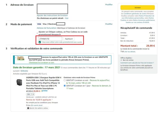 Cela fait maintenant plusieurs années que Ugreen propose des chargeurs en tout genre et c’est aujourd’hui l’un des plus complets ce la firme qui a droit à une promotion sur Amazon. Pour 29,99 euros au lieu de 47 avec le code “ZTMIWV7D” vous pouvez vous offrir le modèle 65W avec 4 ports USB dont 3 USB C et utilisant la technologie GaN pour plus de compacité. Il s’adaptera à l’appareil qu’il charge et sa puissance le rend compatible avec tous les appareils qui utilisent de l’USB C comme port de charge et les autres utilisant encore du MicroUSB.