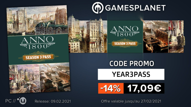 C’est également aujourd’hui la sortie du 3ème Season Pass d’Anno 1800. Grâce au code promo YEAR3PASS vous pouvez avoir ce nouveau Season Pass à 17,09€ !