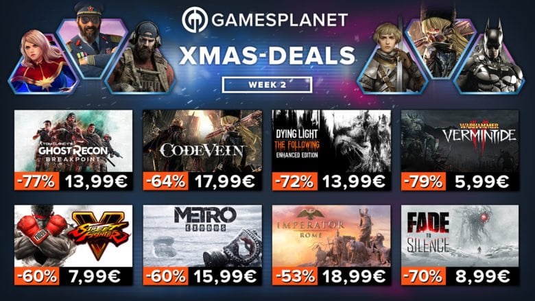 Cette semaine c’est la 3ème et avant dernière semaine des XMAS Deals avec plus de 500 nouvelles offres flash dont : Cities: Skylines Deluxe Edition, Far Cry 5, Far Cry: New Dawn, Bloodstained: Ritual of the Night, SOULCALIBUR VI, Lost Planet 3, Northgard, Darksiders III, Injustice 2 – Legendary Edition, Ace Combat 7: Skies Unknown, RESIDENT EVIL 2 / BIOHAZARD RE:2, RESIDENT EVIL 7 Biohazard, etc.