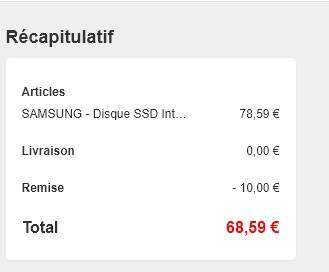 En profitant d’une première réduction ainsi que d’un code promotionnel d’une valeur de 10 euros à retrouver ci-dessous, vous pouvez faire passer le disque SSD interne Samsung 870 QVO à 68,59 euros. Il est habituellement commercialisé à 90 euros, et cela représente donc une remise immédiate de 24 % à l’achat. On ne l’avait jamais vu aussi peu cher.