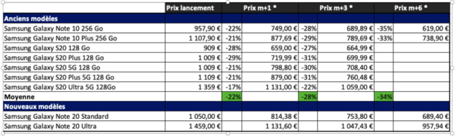 “En se basant sur les évolutions de prix les plus bas* des versions précédentes, on note une réduction moyenne possible (tous les vendeurs ne baissant évidemment pas leur prix) de – 22% 1 mois après la sortie, de – 28% à 3 mois et de – 34% à 6 mois. Avec des prix de départ élevés, il y aura donc probablement de belles économies à réaliser pour ceux qui seraient prêts à patienter au moins 3 mois. Les analyses des variations de prix des années précédentes démontrent que les prix des téléphones Samsung baissent rapidement contrairement à d’autres marques. Ne vous précipitez surtout pas et prenez votre temps pour bien identifier vos besoins mais aussi pour dénicher la bonne affaire” conseille ainsi Romain Gavache.