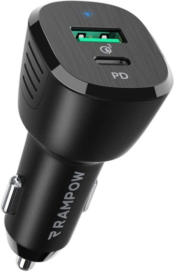 RAMPOW Chargeur Allume Cigare USB C avec Power Delivery 37.5W, Port USB C 19.5W et Port USB A 18W pour iPhone 11/11 Pro/XS/XR/X/8/7/6, iPad Pro/Air/Mini, Samsung S10/S9/S8. Il est au prix de 8,99 euros avec le code P36UHBTT (-40%).