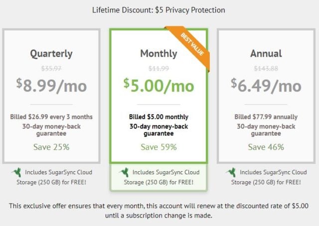Le service de VPN IPVanish propose actuellement une promotion sur son abonnement mensuel qui passe à seulement 5$ par mois et à vie ! A noter qu’avec votre abonnement vous avez également 250Go de stockage offerts dans la Cloud avec SugarSync.