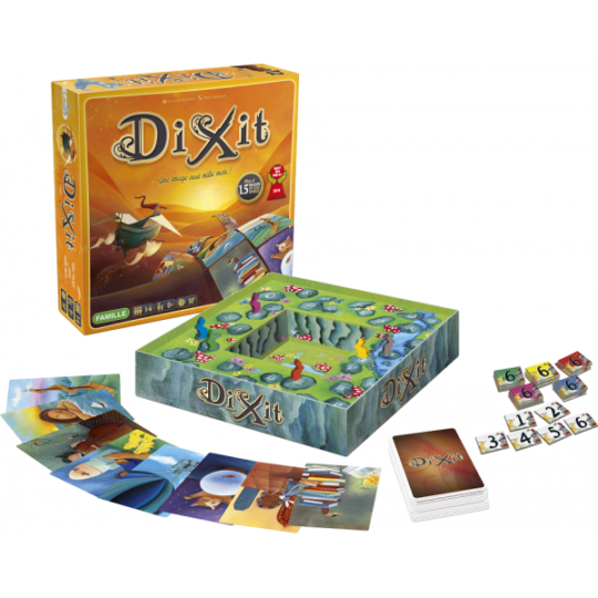 Vous connaissez très certainement déjà le célèbre Dixit (et si vous ne le connaissez pas, courez l’acheter !). Nominé aux As d’or en 2009 et vainqueur du Spiel en 2010, Dixit est le premier jeu de Libellud. Il offre un matériel de très grande qualité, avec des cartes oniriques magnifiquement illustrées par Marie Cardouat qui permettent de faire travailler l’imagination mieux que n’importe quel autre jeu.