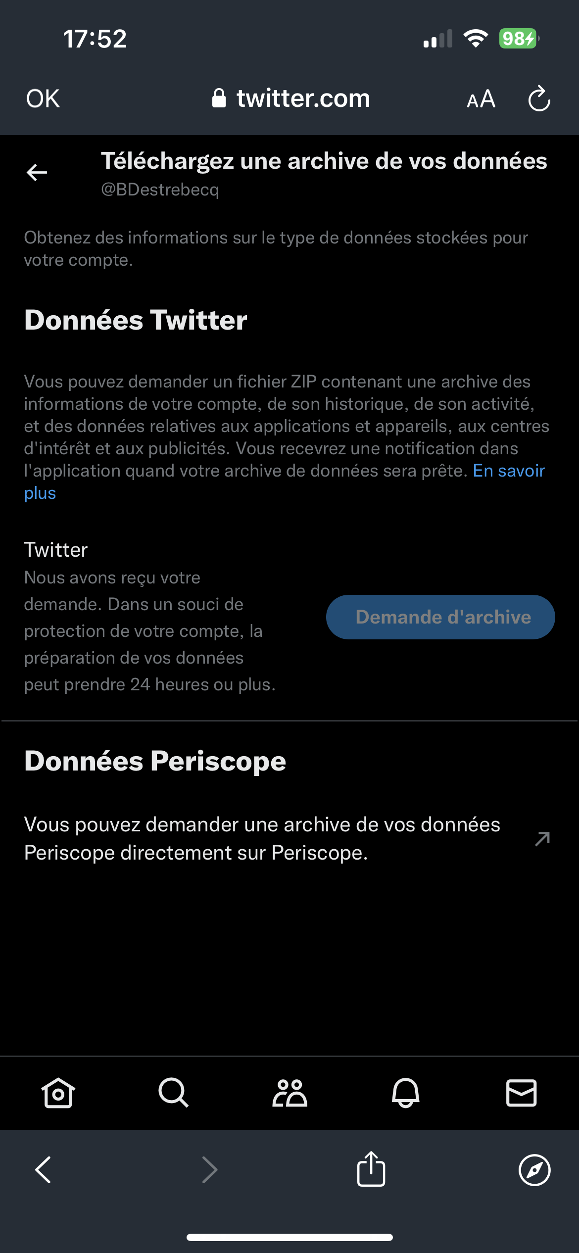 - Une page se charge, il ne vous reste plus qu’à cliquer sur le bouton “Demander une archive”.