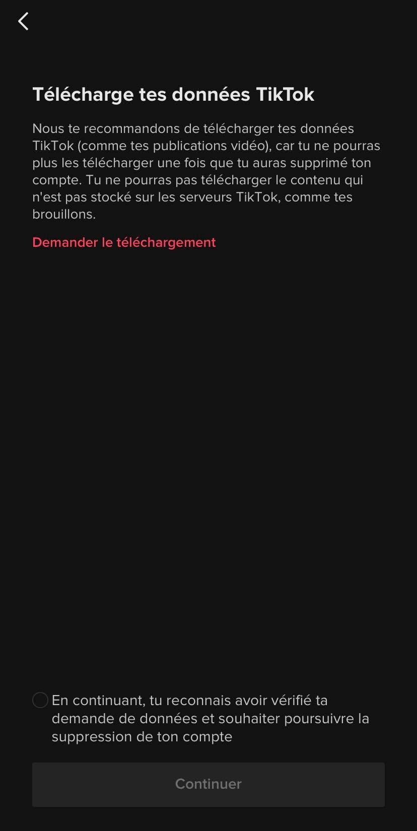 Comme indiqué plus tôt, cette option ne sera disponible que dans les 30 jours suivant votre demande de suppression de compte auprès de Tiktok.