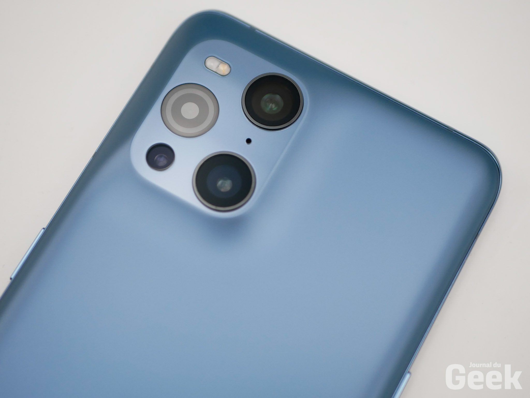 Enfin, pour ce qui est de l’Oppo Find X3 Pro, on retrouve quatre capteurs au dos : un grand-angle principal de 50 MP (équivalent 24 mm, f/1.8), un ultra grand-angle de 50 MP (équivalent 15 mm, f/2.2), un téléphoto 2X de 13 MP (équivalent 52 mm, f/2.4), et un microscope de 3 MP (f/3.0, agrandissement jusqu’à 60x).