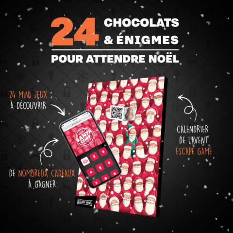 Le principe de ce calendrier de l’avent Escape Hunt, est d’ouvrir la case du jour, récupérer le chocolat dedans et scanner un QR code présent dans la case. Lorsque vous scannez un QR code, vous serez redirigé vers le site web de la Santa Corp. pour résoudre l’énigme du jour. Ces énigmes s’inscrivent toutes dans un scénario de préparation de Noël, une partie d’entre elles fonctionnent sur un principe d’ouverture de cadenas virtuels via des codes, suite de chiffres, combinaison de couleur ou suite musicale. De plus, tout au long du mois de décembre il y aura la possibilité de gagner d’autres lots comme des places pour une aventure en réalité virtuelle, des escape game à jouer chez soi et d’autres surprises.