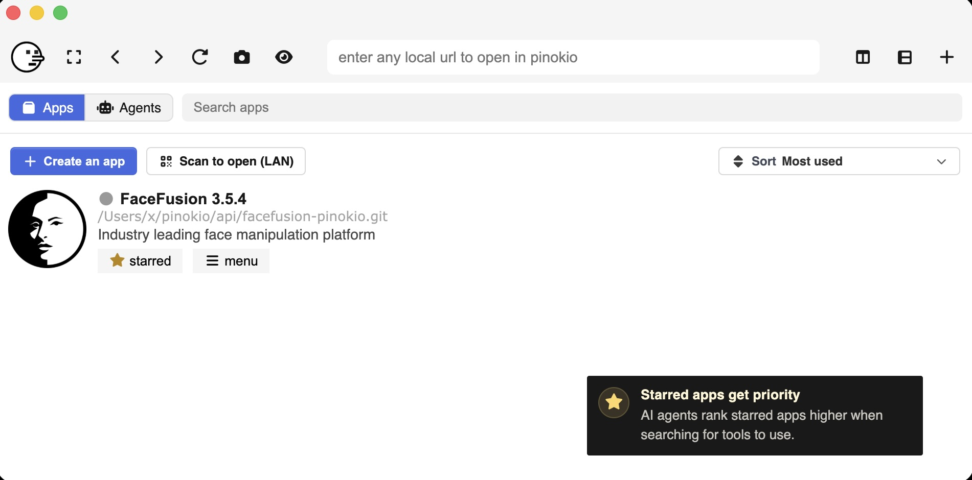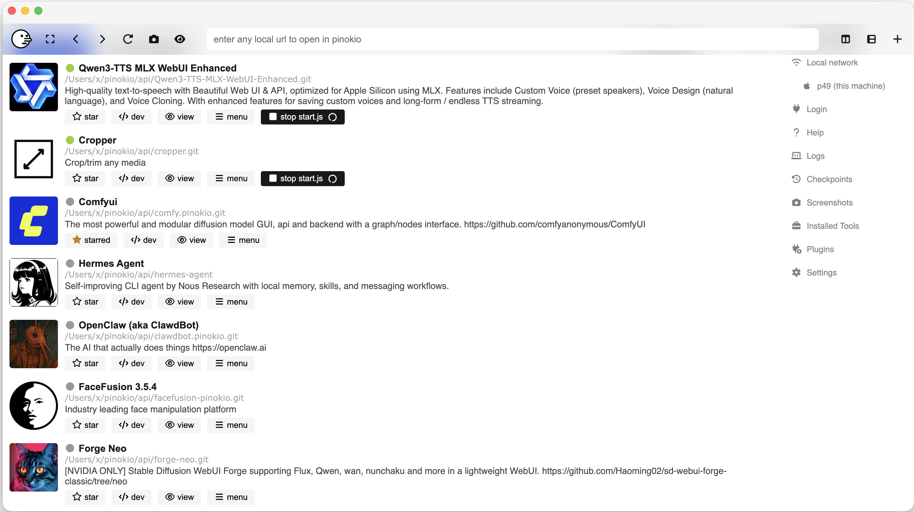 En résumé, Pinokio agit comme un installateur universel intelligent. Il transforme une procédure d’installation technique de plusieurs minutes en quelques clics. Une fois l’application lancée, il ouvre un onglet dans son interface pour que vous puissiez l’utiliser immédiatement.