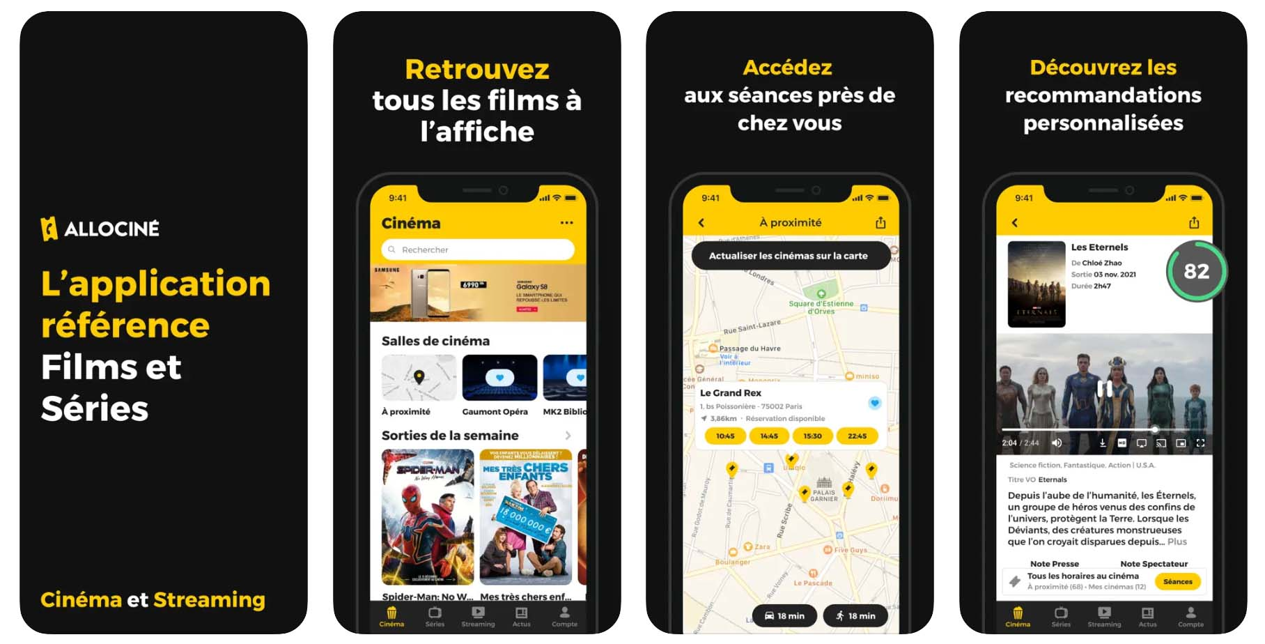 Son moteur de recherche se synchronise avec les exploitants de salles. En utilisant la géolocalisation, l’application identifie les cinémas à proximité et affiche les horaires des séances. AlloCiné intègre également des passerelles techniques pour finaliser l’achat de billets auprès des établissements partenaires.
