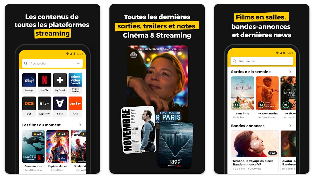 AlloCiné agit également comme un guide de streaming. L’application intègre les catalogues de services comme Netflix ou Disney+, ce qui permet de savoir si un programme est disponible en abonnement, en location ou à l’achat, tout en proposant des recommandations basées sur vos préférences.