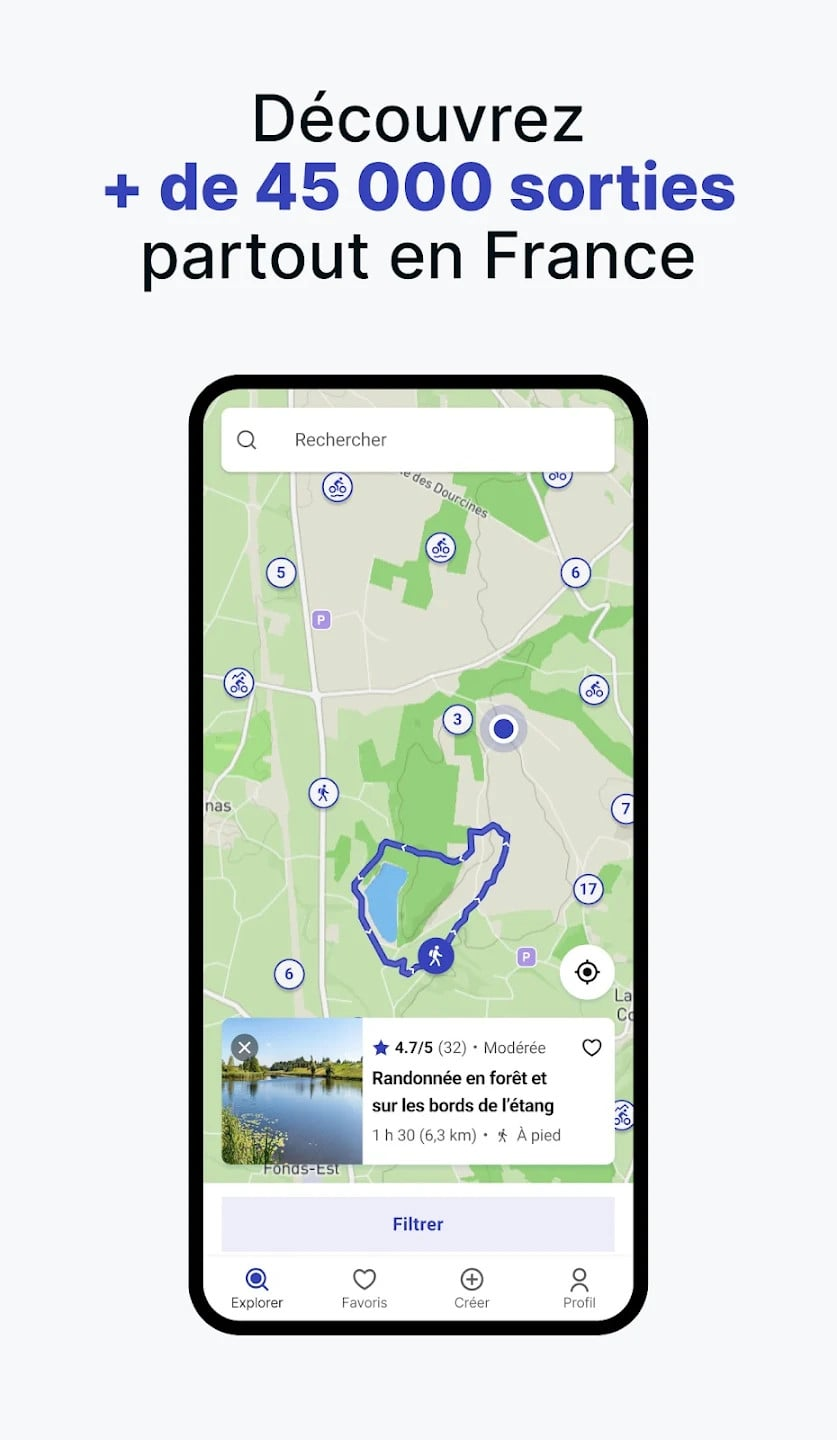 Avec le nouveau slogan More to Explore, Decathlon positionne son application comme un guide vers une pratique respectueuse de l’environnement, en privilégiant les sentiers vérifiés afin d’éviter le dérangement de la faune. Avec Decathlon Outdoor, vous pouvez filtrer vos sorties selon la difficulté, le sport, la distance ou le dénivelé. L’application propose également un guidage visuel et vocal.