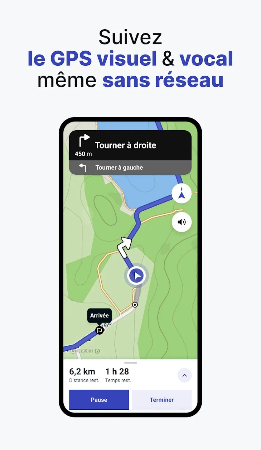 Le mode hors ligne est indispensable pour les applications de ce genre. Avant de partir, vous pouvez télécharger la fiche de la randonnée. Decathlon Outdoor stocke alors les données cartographiques et le tracé. Cela permet de couper la 4G ou la 5G afin d’économiser la batterie tout en restant localisé grâce à la puce GPS de votre smartphone. L’écran affiche votre position sur le tracé. Si vous rangez le téléphone, une voix vous indique les changements de direction. Si vous vous éloignez de plusieurs mètres du parcours, votre téléphone vibre ou émet un signal sonore pour vous alerter.
