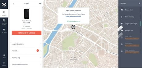 HiddenApp sert à la récupération d’appareils volés. Cette application prend discrètement en photo les voleurs, réalise des captures d’écran et exploite des données de localisation précises. HiddenApp est compatible uniquement avec macOS, iOS et iPadOS. Cette application propose un essai gratuit limité, mais son utilisation complète nécessite un abonnement payant.