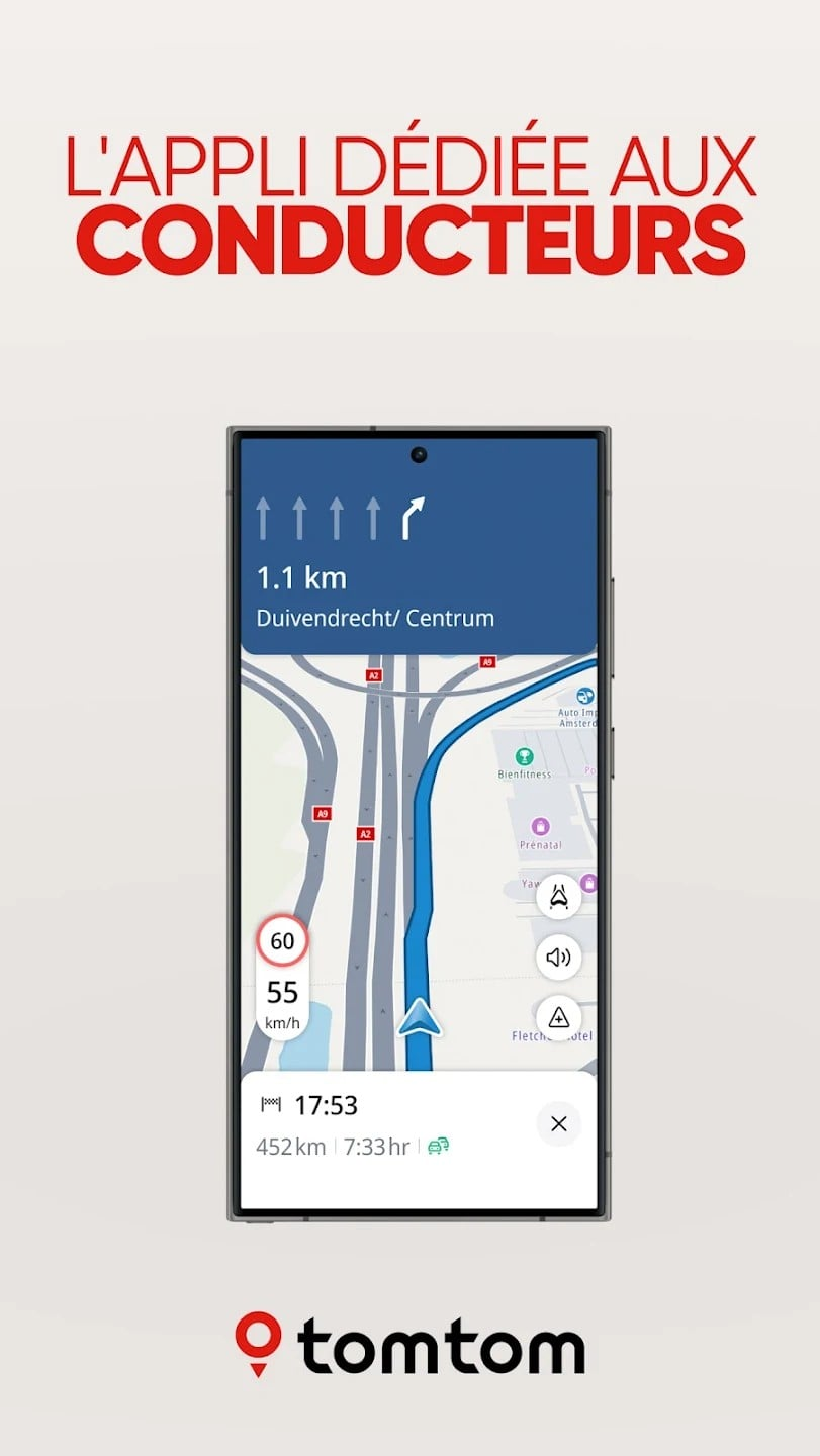Vous pouvez télécharger TomTom sur la grande majorité des smartphones actuels. L'application se récupère directement sur le Google Play Store pour tous les smartphones Android. Si disposer d'un système récent permet de profiter d'un rendu visuel optimal, le programme n'en demeure pas moins léger. Sa conception intelligente facilite l'installation sur une grande variété de terminaux, y compris ceux dont la mémoire est limitée. Vous bénéficiez ainsi d'un outil performant qui ne ralentit pas votre appareil au quotidien.