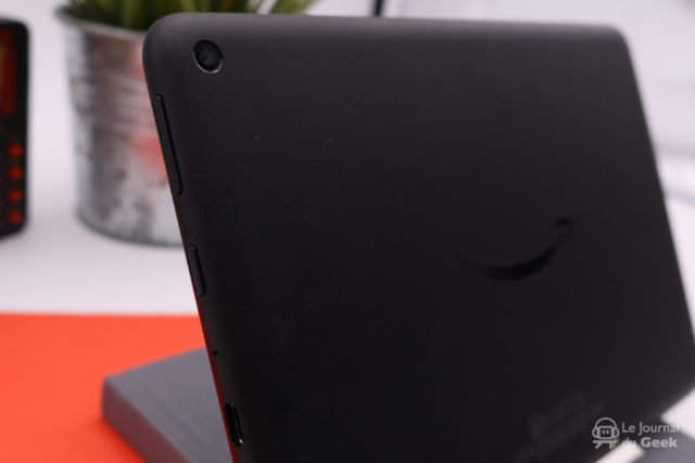 Cette année, la Fire HD 8 a été revue au niveau du design pour être un peu plus dans l’air du temps. Si on ne retrouve pas forcément les bords les plus fins du marché, elles sont loin d’être énormes et au quotidien, on en vient à les oublier. La finition est plastique bien évidemment pour ce prix, mais on aurait pu s’attendre à pire et pour le coup, on peut qualifier la finition de décente. Elle tient bien en main et s’avère équilibrée, aussi bien dans un usage portrait que paysage.