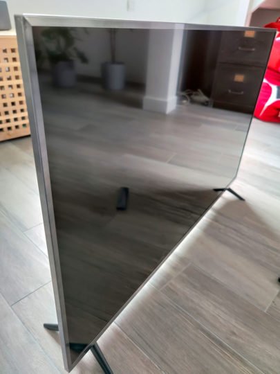 Parlons maintenant de la qualité de cette TV. Inévitablement ce n’est ni de l’OLED, ni du QLED, mais du bon vieux LCD (avec rétroéclairage Direct-LED) comme beaucoup sur cette gamme de prix. L’écran est très brillant et peu lisible si vous le placez mal dans votre pièce, notamment face au soleil. Les angles de vision sont corrects sans êtres exceptionnels, mais c’est l’avantage de la dalle LCD de type VA (Vertical Alignment) qui le place un peu au-dessus de la moyenne. Les réglages de l’écran ne sont pas énormes (pas de balance des blancs, de gamma, etc.) il y a différents modes préréglés et c’est le mode “Film” qui nous a semblé le plus juste offrant un contraste assez bon malgré une luminosité parfois hasardeuse même avec le HDR activé. Il faudra donc mettre le nez dans les différents menus pour arriver à l’image qui vous convient le mieux, car les réglages par défaut peuvent, selon votre source, vous donner quelques surprises.