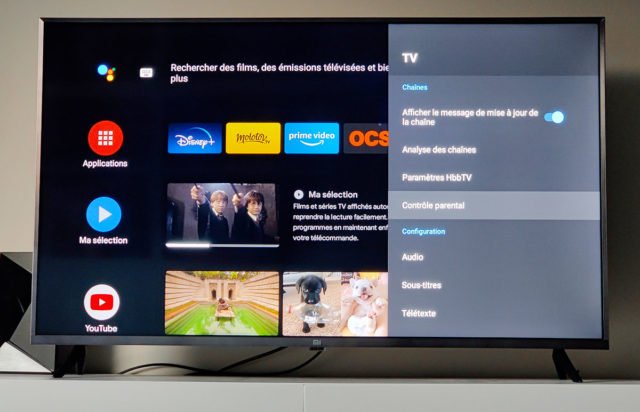 On peut citer tout d’abord Android TV, l’OS de Google dédié à la TV permet en effet d’avoir accès à un vaste catalogue d’applications que certains concurrents ne peuvent proposer. Xiaomi a d’ailleurs rajouté par dessus une application que vous pouvez mettre par défaut pour remplacer le lanceur classique d’Android TV, il s’agit de PatchWall. Celle-ci vous permet d’accéder rapidement aux différentes sources, vous propose des applications propres à Xiaomi, ainsi que de la recommandation de contenus et un moteur de recherche propre à l’app. Notez que PatchWall peut être configuré pour être l’interface principale de la TV.