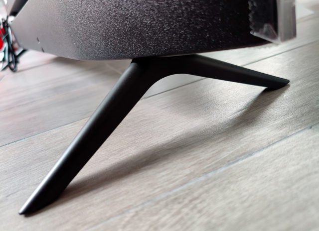La Mi TV 4S de Xiaomi offre un design assez classique, avec une finition métallique plutôt bonne pour cette gamme de prix. On retrouve par contre des bords pas forcément fins et pas mal de plastique, elle est d’ailleurs assez légère (12kg). Dans la boite, nous avons les pieds à monter et le minimum nécessaire, c’est-à-dire une télécommande (sans piles) et une notice succincte.