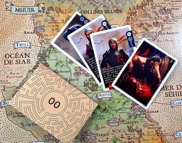 Chaque carte est unique et influence l’histoire selon le choix que vous aurez fait. Pour avoir une idée des conséquences, mais sans en connaître le détail, le recto de la carte indique les ressources du royaume qui seront impactées sur la piste de stabilité (influence, moral, bien-être, connaissance et finance) et éventuellement un autocollant qui représente un impact positif ou négatif sur les prochaines parties. En complément de l’histoire de la carte, ces indications vous permettent d’orienter votre choix et de l’argumenter lors du débat avec les autres joueurs. Pour appuyer votre décision, vous devez miser des jetons de pouvoir que vous dépenserez uniquement si le choix que vous supportez l’emporte. Les jetons de pouvoir dépensés sont mis dans une réserve de jetons qui seront redistribués lors du dilemme suivant aux joueurs qui décideront de passer pour regagner du pouvoir. Le royaume d’Anclisse n’étant pas épargné par la corruption, vous pouvez également tenter d’influencer le vote de vos adversaires moyennant quelques pièces d’or. Certains votes vous amèneront à apposer votre signature sur des cartes ou des autocollants si vous êtes celui qui a dépensé le plus de pouvoir pour mener à cette décision. On ne vous en dit pas plus sur les conséquences de ces signatures, mais sachez que c’est immersif et jouissif de signer le matériel du jeu. On a vraiment cette impression d’être acteur de l’histoire et des orientations qu’elle prend. L’autre aspect Legacy du jeu concerne des enveloppes secrètes qui sont ouvertes de temps à autre selon les décisions que nous prenons. Chaque enveloppe contient 3 nouvelles cartes Dilemme que l’on ajoute à la pioche des cartes Dilemme, et une carte histoire qui fait avancer l’un des 6 arcs narratifs.