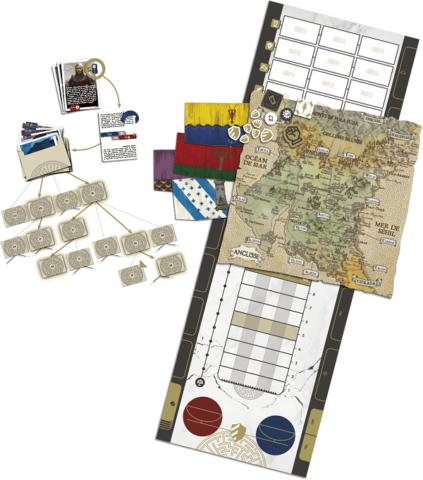 Bienvenue dans la salle du Conseil aux côtés du Roi d’Anclisse pour l’aider à trancher les questions politiques et stratégiques qui déterminent l’avenir du Royaume. Votre famille n’est bien évidemment pas la seule à y siéger. Chaque conseiller doit à la fois veiller à la stabilité du Royaume, mais aussi à servir les intérêts de sa propre maison. Intérêts secrets, bien évidemment. Mais attention à peser le pour et le contre : Chaque décision prise aura des conséquences inéluctables sur la destinée du royaume…