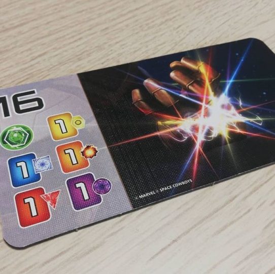 La fin de partie est déclenché quand toutes les conditions pour assembler le gant d’infinité sont réunies. C’est-à-dire : avoir au moins 16 points, avoir une carte de chaque couleur et avoir un jeton vert.